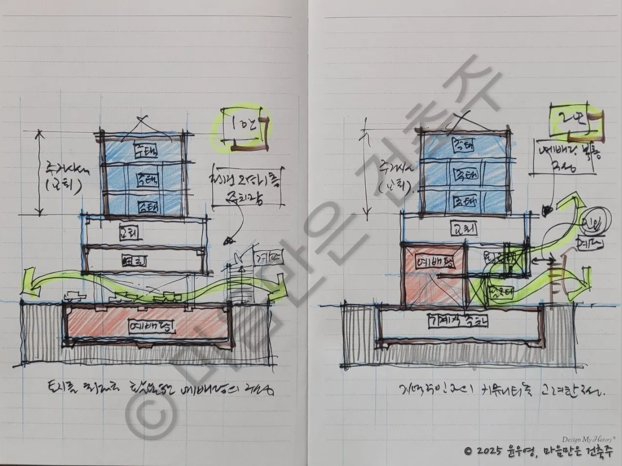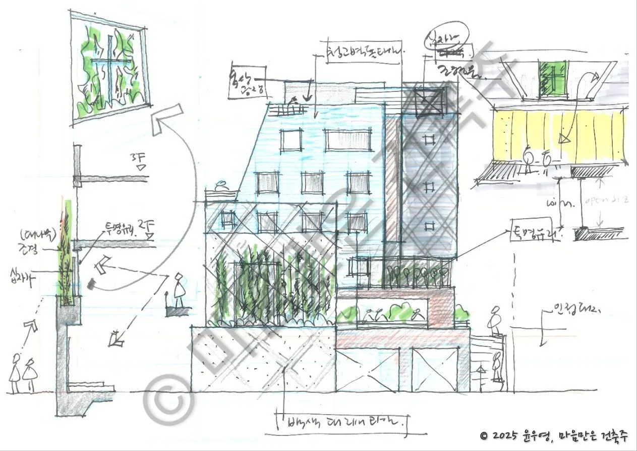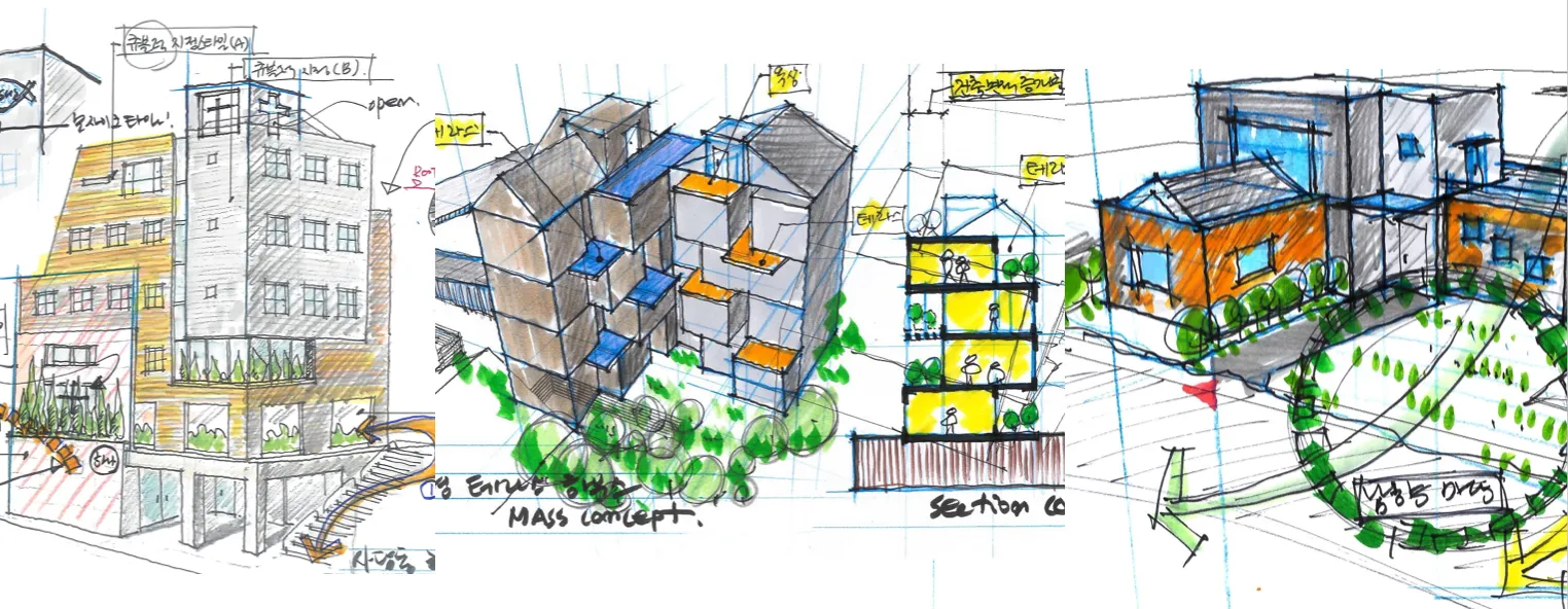 책에는 현장 스케치부터 답을 찾아가는 과정까지 많은 기록을 담았습니다. 종이책의 한계 때문에 보기 어려운 주요 스케치들은 이곳에 모아 놓습니다. 저에게도 배움이 된 건축 프로젝트들의 예시이기도 합니다.