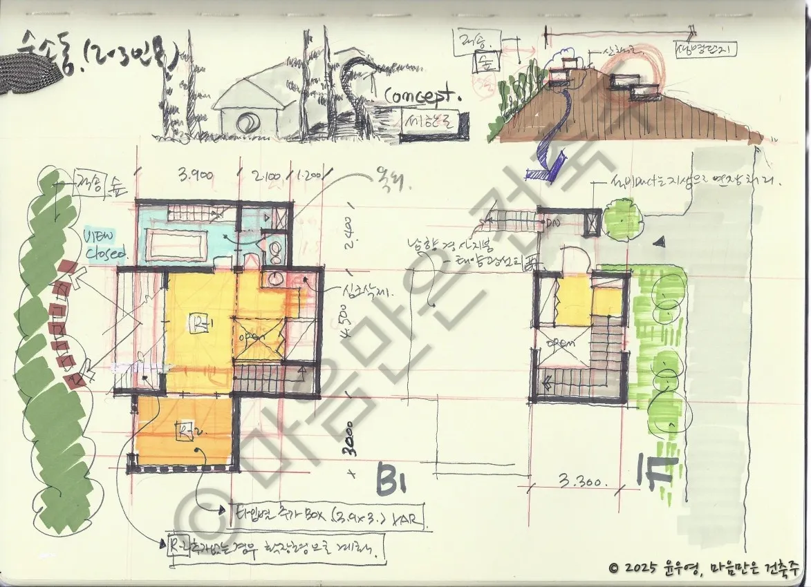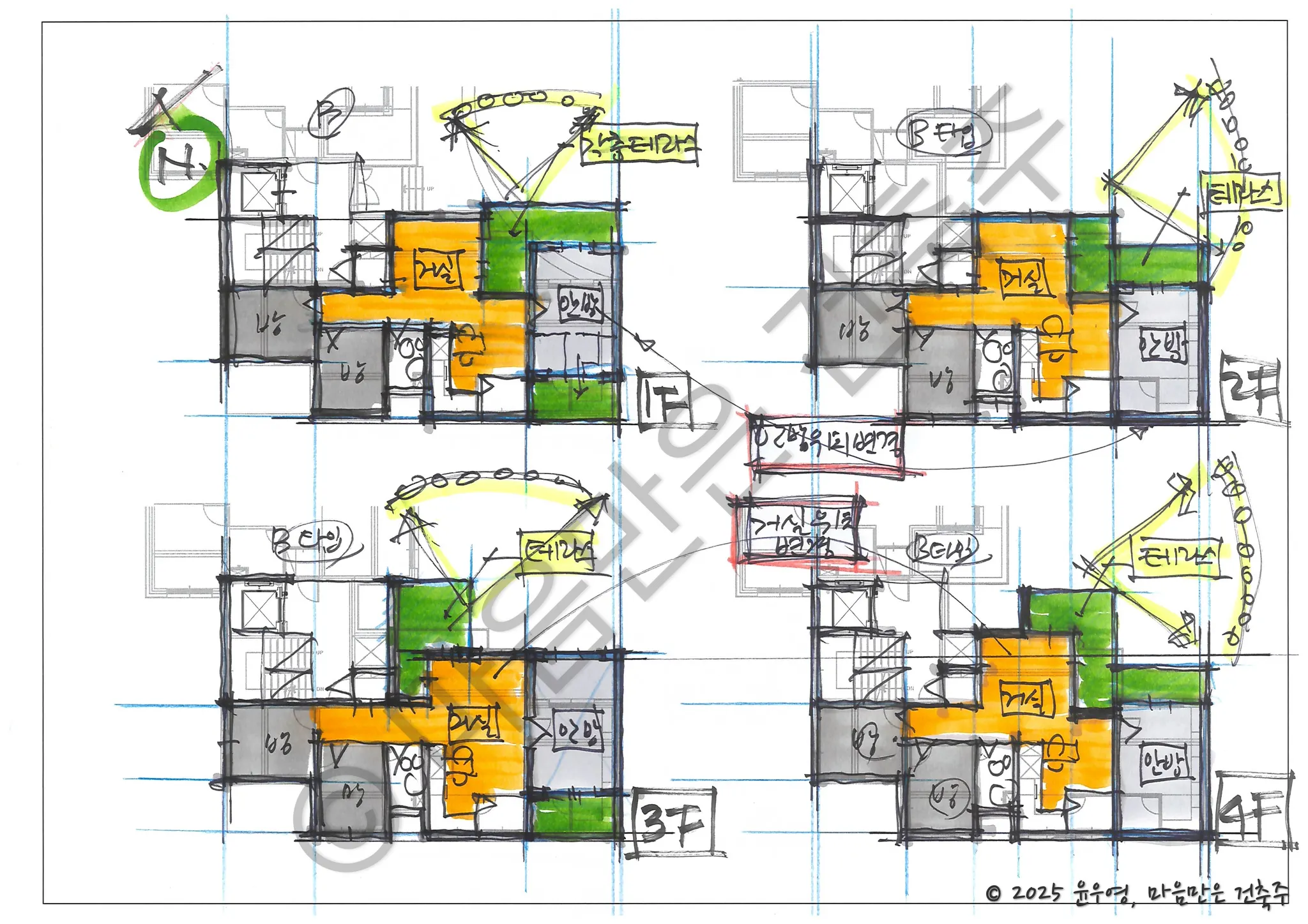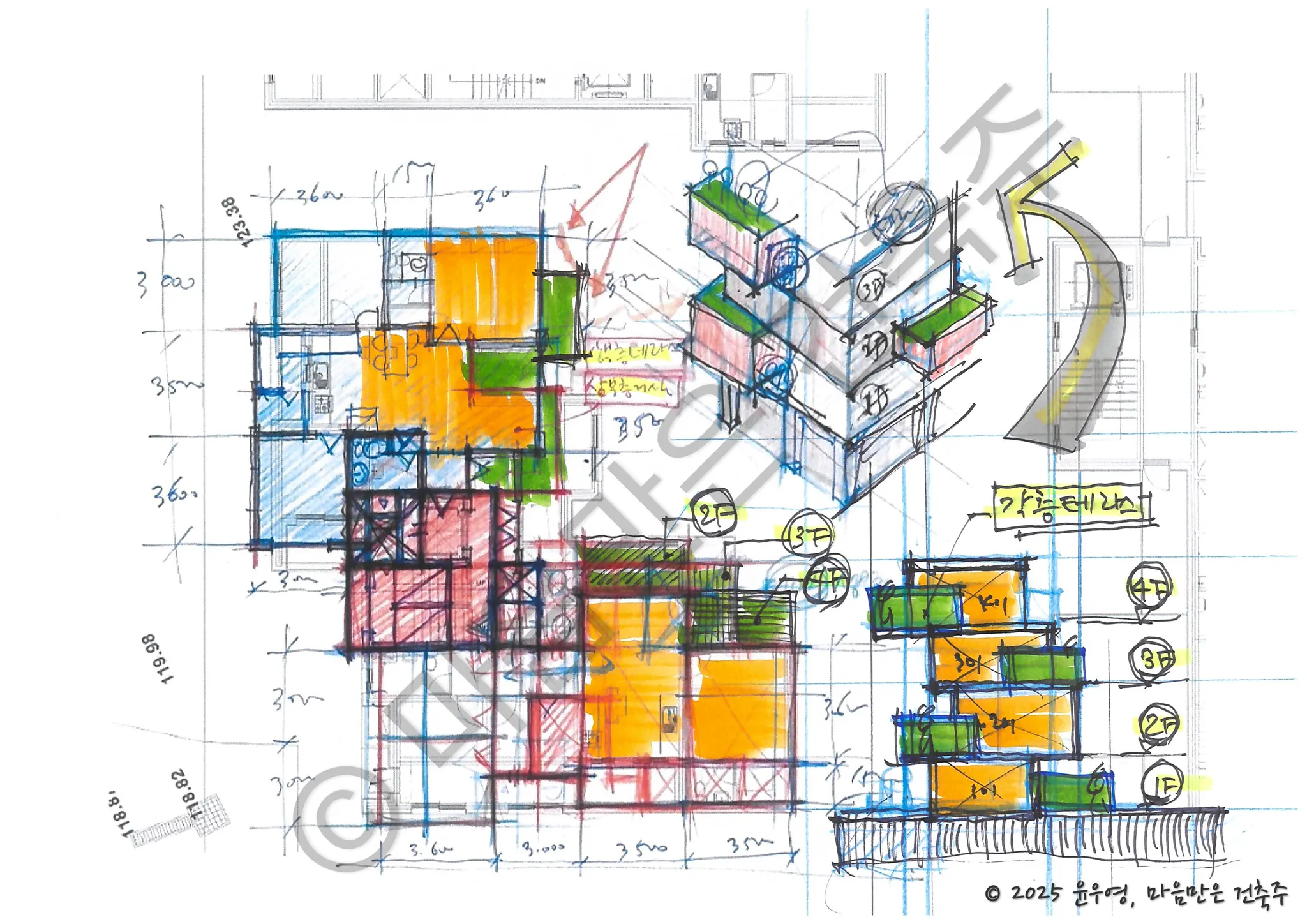 책에는 현장 스케치부터 답을 찾아가는 과정까지 많은 기록을 담았습니다. 종이책의 한계 때문에 보기 어려운 주요 스케치들은 이곳에 모아 놓습니다. 저에게도 배움이 된 건축 프로젝트들의 예시이기도 합니다.