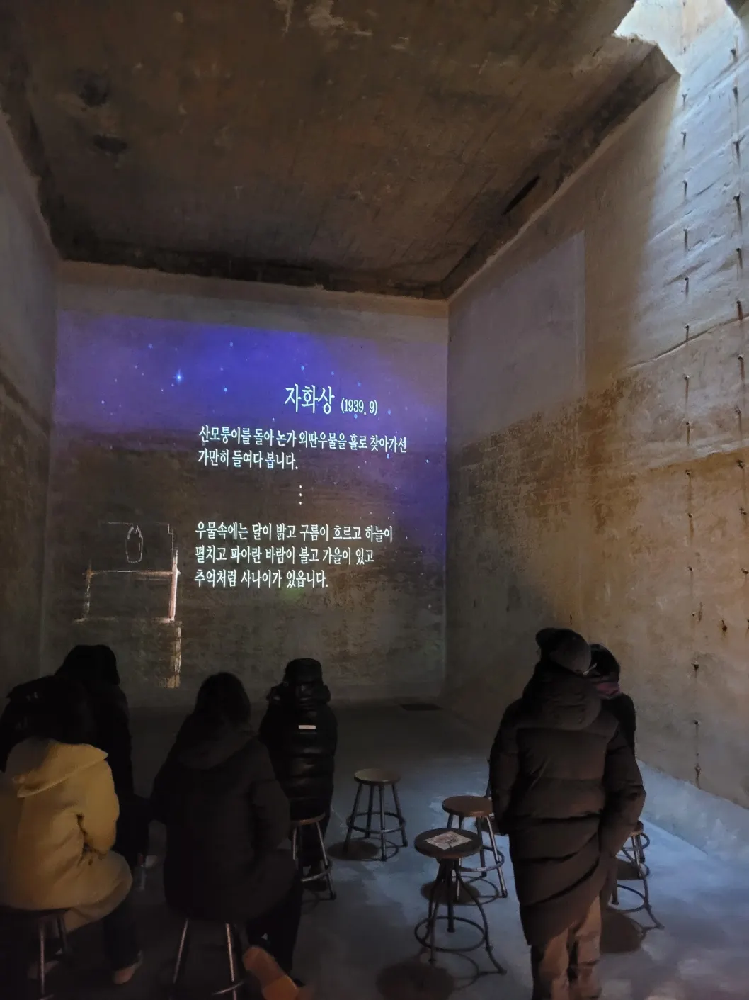 지하공간에서 윤동주의 어린 생애를, 그 짧은 시간동안 남기고간 많은 것들에 대해 보고 듣고 느끼며 모두 먹먹해졌다. 시인의 시와 생애를 듣는 그 공간이 정말 그의 시와 닮았다는 생각이 들었다. 많은 시간을 지나, 온전히 우리에게 전해진 그것은, 너무 순결해서 아픈 그의 진심과 사랑이었을까.