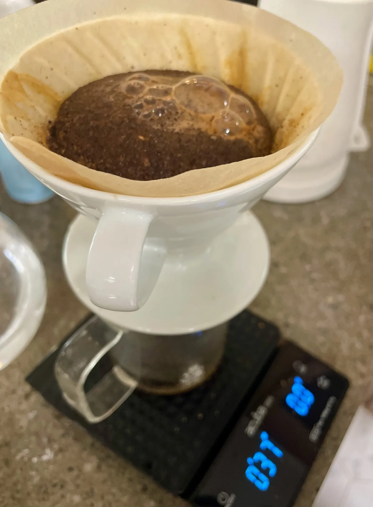 중배전 에티오피아 예가체프 드립 커피. 무게와 시간을 재면서 내려요