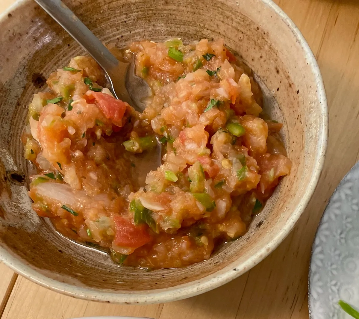 지난 주에 타코 만들려고 준비했던 유기농 토마토 다 먹어치워서, 마트에서 구매한 무농약 토마토, 유기농 양파, 달팽이 텃밭 고추, 유기농 고수, 직접 담근 레몬소금, 유기농 레몬즙으로 만든 살사 마라카다(Salsa Marakada)